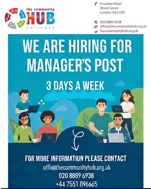 For job description or to apply, please email us office@thecommunityhub.org.uk